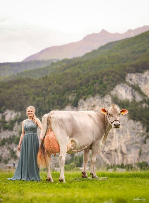 Die Schweizer Braunviehkönigin zeigt als Botschafterin die wirtschaftlichen Vorteile der braunen Rasse der breiten Öffentlichkeit im In- und Ausland auf.