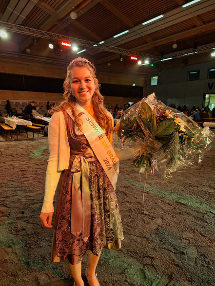 Am 30. November 2024 wurde ich an der Swiss Classic in Brunegg zu deiner neuen Braunviehkönigin gewählt. Es ist mir eine grosse Ehre unsere braune Kuh und die Landwirtschaft die nächsten zwei Jahre zu vertreten.